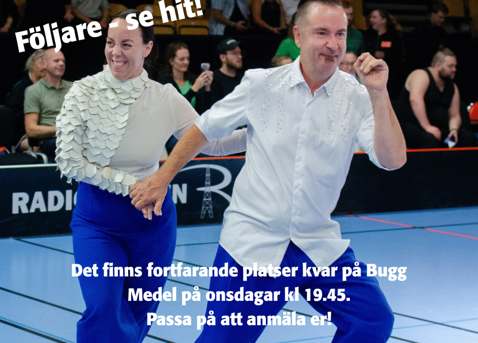 Är du följare och vill gå en buggkurs på medelnivå så har du kommit rätt. Det finns fortfarande platser kvar på vår Bugg Medel kurs som går på onsdagar kl 19.45 – 21.00. Anmälan är öppen några dagar till så missa inte chansen!